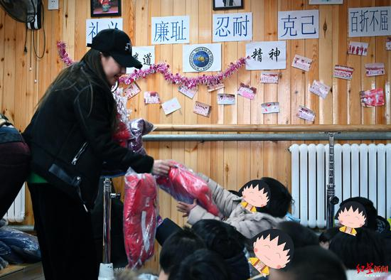 郭美美一行人四五辆车,里面装满了赠给孩子们的东西。“给孩子们买了一百多件衣服,学校把每个孩子需要的衣服尺寸发过来,我按照表格上的要求,一件件去买来的。”在公益机构里,郭美美夹在一群朋友中,跟随着人流,在机构负责人带领下,参观每个教室,听着负责人的介绍,但当走进一间有钢琴的教室,郭美美一下子开心了起来,她开始给孩子们弹琴唱歌,郭美美被孩子们团团围住,他们一遍遍地请郭美美继续弹琴、继续唱歌。