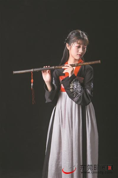 在她的手机相册里有不少自己穿汉服的美照,其中一张图片,她身穿齐胸襦裙的汉服,手拿笛子,配上汉服的飘逸,古韵十足。