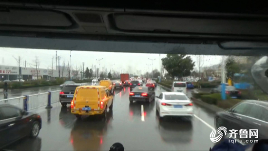 虽然雨夹雪路面湿滑,但消防车火速出警。在距离现场300米左右时,出现交通拥堵,消防车被阻。此时前方数十辆私家车听到消防车警报声后,都分别向自己左右前方45度角侧身转向,为后方的消防车让出一条“救援通道”。