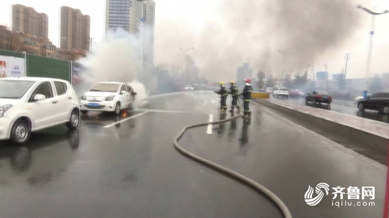 原标题:点赞!电动汽车行驶中突然起火 临沂私家车为消防车“45度让路”