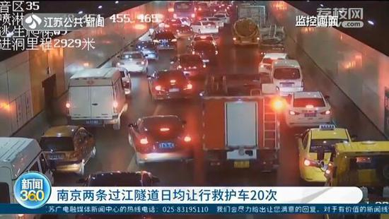 原标题:南京两条过江隧道日均让行救护车20次!“45度让路法”真实出现