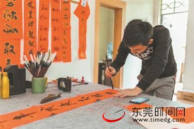 “前不久,在东莞创业的父亲摔伤了腿,就将工作室搬到了东莞,既可以写春联,又可以陪父母。”王文杰说,“我有不少顾客是东莞人,来到茶山后,有顾客还亲自开车过来拿春联。”从2016年在广州网络创业代写春联开始,他已经累计写了3万副春联。