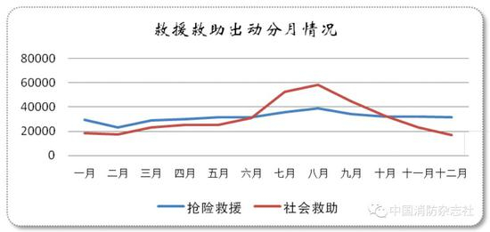 其中,出动起数是有统计数据以来,消防队伍处警任务量最多的一年,人均出动次数也是近五年来最多的。(近五年人均出动分别为98次、100次、105次、107次、138次)抢险救援36.6万起、社会救助36.6万起,合计占总数的57.4%。且集中在石化、易燃易爆及洪涝、强降雨、台风、泥石流、滑坡、马蜂窝等事故险情,7、8、9月份的救援救助出动占全年的35.3%。当前,正值冬季火灾高发期,加之春节临近,各地人流物流集中,各类庆祝、促销、文娱活动频繁,