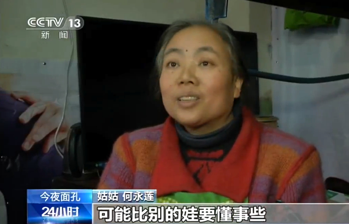 姑姑 何永莲:她也知道家庭的事,所以比别的娃要懂事些,弟弟早上上学,她就操心着一块儿走了,我也没操过心。