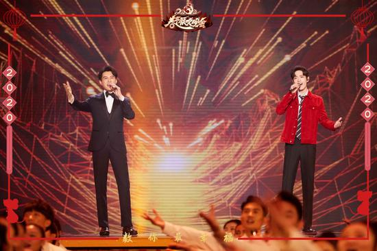 更值得一提的是,此前就已经爆出的“东风吹战鼓擂”靳东与肖战组合此番正式亮相,一个精英,一个新锐;一个是严谨的西装三件套,帅气到一丝不苟,一个是夹克配条纹领带,俊美中带着一丝温润;一个声音浑厚磁性,一个声音高亢明亮,虽然风格南辕北辙,但各擅胜场,让现场的观众小姐姐们陷入选择困难症,只能为他们高呼应援。二人虽然首次合作,但此次同台依然默契十足,他们的同台不容错过。