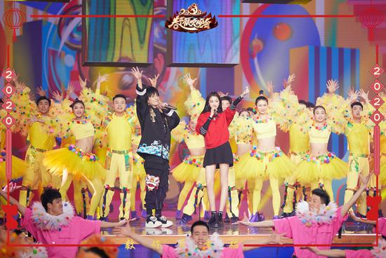 北京台春晚少不了京籍艺人的身影,大张伟、关晓彤这两个北京孩子,也来到了春晚现场。这一次他们将携手“撒欢儿”,将大年初一的欢乐祝福送至千家万户。明黄色、橘黄色、青绿色点亮了舞台的绚烂、3D打印技术制作的糖果乐园带来了新春的喜气……大张伟、关晓彤带来的这首歌曲,将大张伟的新歌《撒花儿》与动画片《好猫咪咪》中的经典台词进行了结合并重新编曲。这种改编不仅在原曲的欢乐喜庆中又添俏皮,同时也巧妙引入鼠年元素,唤起了80后90后观众的记忆,使得这首歌成为点燃现场气氛的神曲。只见台上台下都随着韵律一起舞动,加入大合唱之中,将“共欢新故岁,迎送一宵中”的美好景象引入现实。