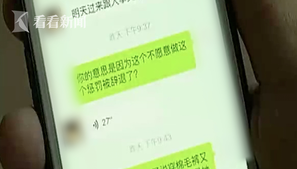 当晚高先生回家后,就收到了公司负责人发来的信息,告诉他被辞退了。但公司一位负责人表示,高先生所说的穿丝袜跳舞惩罚,她并不知情。