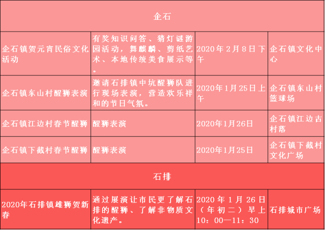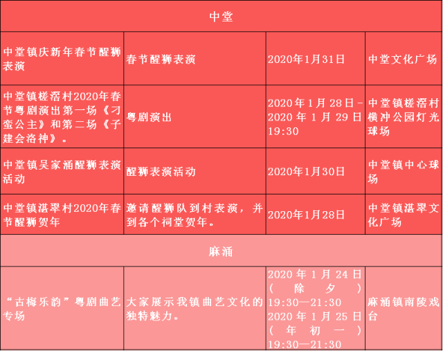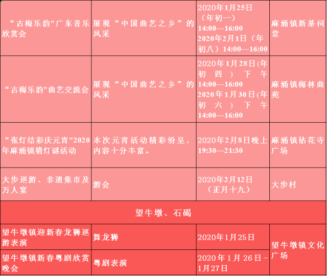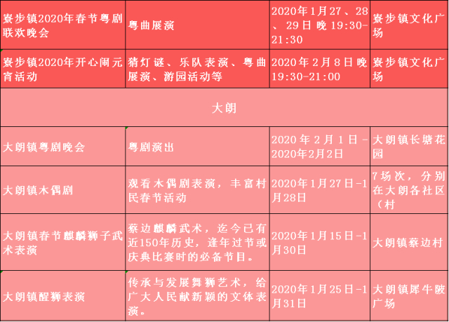 2020春节将至,为认真学习贯彻党的十九大和十九届四中全会精神,不断丰富文化惠民活动,在全市营造欢乐祥和、喜庆热烈的浓厚节日氛围,各镇(街)、各单位积极统筹部署,精心策划开展2020年春节期间一系列多彩多姿、参与广泛、特色鲜明的重点亮点文体活动,在节日期间为广大市民提供充足的、丰富的精神食粮,不断满足群众文化获得感、幸福感。
