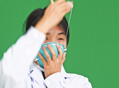 他介绍,常用的N95口罩实际上分为两种,一种是防生物口罩(蓝绿色),型号1860或9132;一种是防尘口罩(白色),型号8210。市民在购买时应选择防生物的医用防护口罩。佩戴防生物医用防护口罩时,将口罩罩在面部,先将下面的一根橡皮筋固定在脖子上,再将上面一根橡皮筋固定在头上,捏紧金属片,让口罩和面部贴合,不留缝隙。