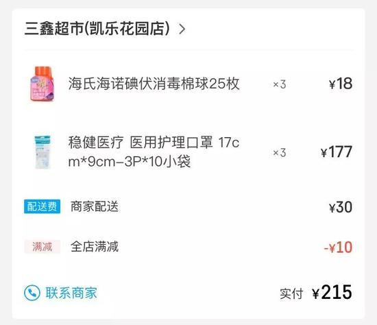 昨晚,我预订了好几单口罩,然而几分钟后就收到了商家的退货信息。只有这一单——一共30个外科口罩,加上配送费200多元,次日送达。
