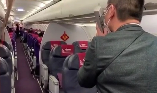 20时45分,董经理再次出现在机舱过道上。他手举机舱电话,通过机舱广播说:欢迎各位乘坐HO1340航班,本次航班将飞往武汉……”话音未落,机舱有乘客鼓起了掌声。