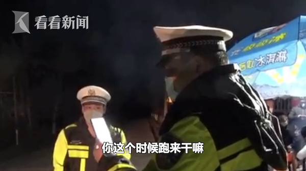 “看到啦,我给你送吃的。”“你这个时候跑来干嘛!你来了就来了,那把东西放这里就直接回家哦。”民警一边在视频中“责怪”妻子不该跑来,一边开心地连声说:“我看到你了!我看到你了!那个亮车灯的是你吗?”