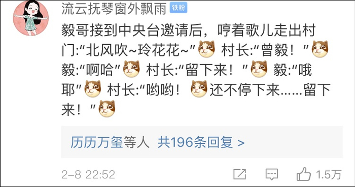 原标题:元宵晚会上凤凰传奇只有玲花?曾毅回应:村长不让走