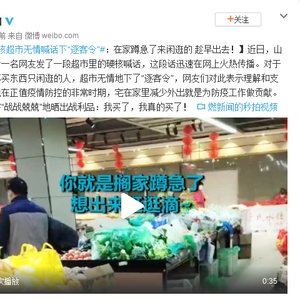 近日,山东临沂一名网友发了一段超市里的硬核喊话,这段话迅速在网上火热传播。对于那些不买东西只闲逛的人,超市无情地下了“逐客令”,网友们对此表示理解和支持:现在正值疫情防控的非常时期,宅在家里减少外出就是为防疫工作做贡献。有顾客“战战兢兢”地晒出战利品:我买了,我真的买了!