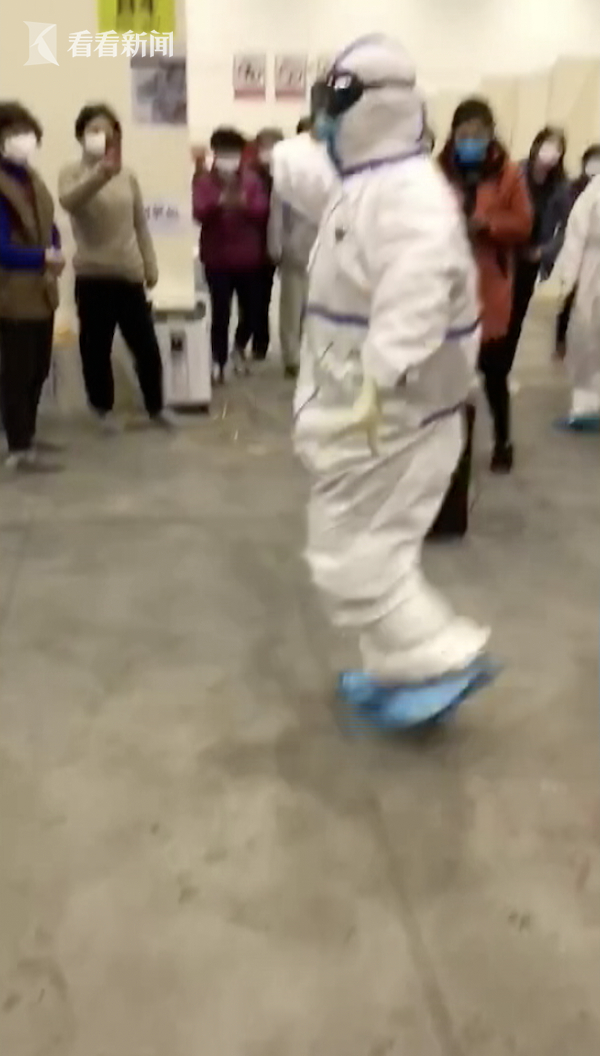 原本,巴哈古丽·托勒恒不用进舱,但是她说,如果跳舞有利于患者恢复,很乐意为武汉的“家人们”做一点小事。“我没想到我很幸运,我就来到这里,做一些后勤保障工作,我很荣幸,我非常开心,能为我们武汉的家人,做一点小事。”
