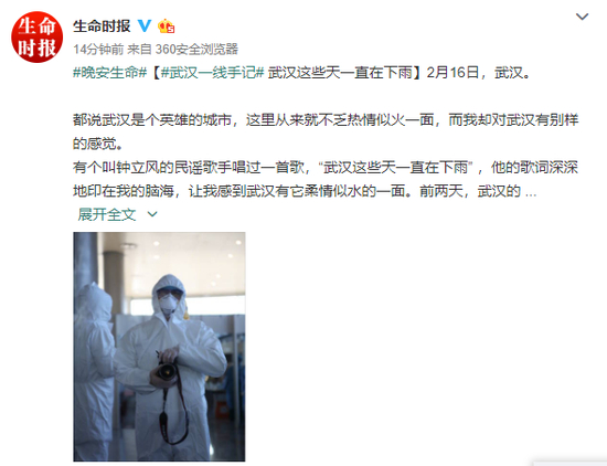 “武汉这些天一直在下雨,而我会在有阳光的地方等你。”(生命时报赴武汉特派记者 董长喜)