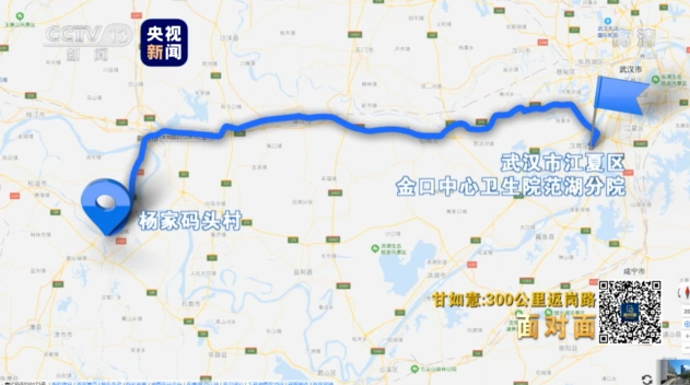 2月3日,下午6点左右,又经过六个小时的骑行,甘如意终于到达武汉市江夏区金口中心卫生院范湖分院。从家到这里三百多公里的路程,甘如意前后用了四天三夜。