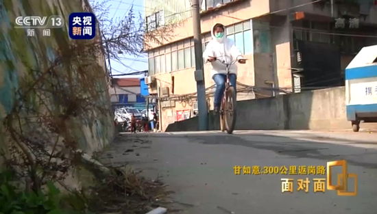 骑自行车、步行、骑共享单车、搭顺风车,途经荆州市、潜江市、武汉市汉阳区,辗转300多公里,历时四天三夜,最近,95后女孩儿甘如意艰难返岗,奔赴武汉抗击疫情的故事引起广泛关注。《面对面》栏目记者在武汉采访了甘如意,了解300公里返岗背后的故事。