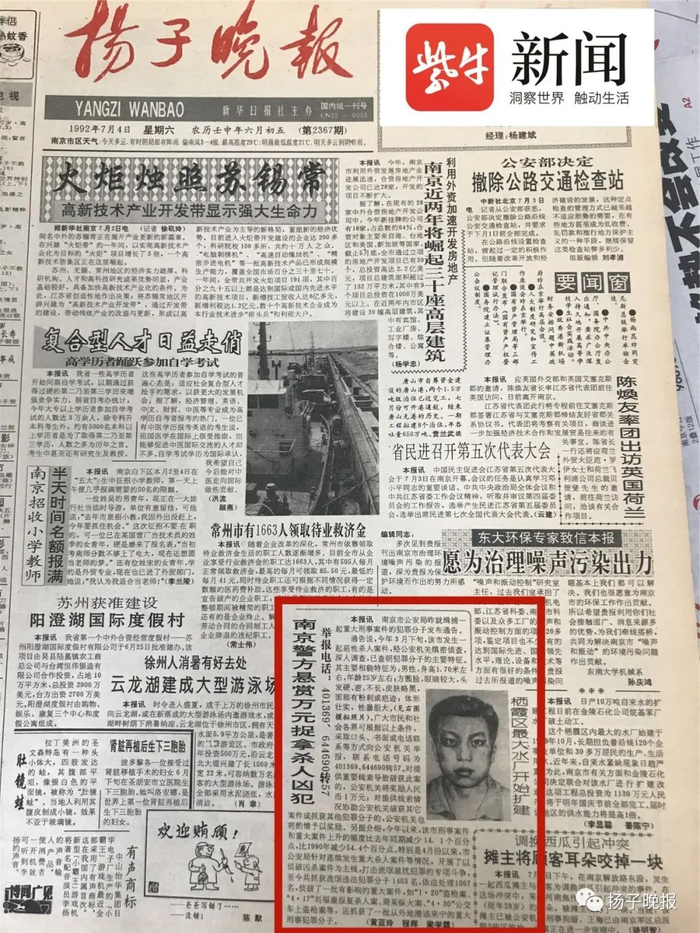 28年前的1992年7月4日,也是林伶被杀的3个多月后,扬子晚报曾经刊发过一篇报道,标题为《南京警方悬赏万元捉拿杀人凶犯——举报电话:401369、644690转57》。