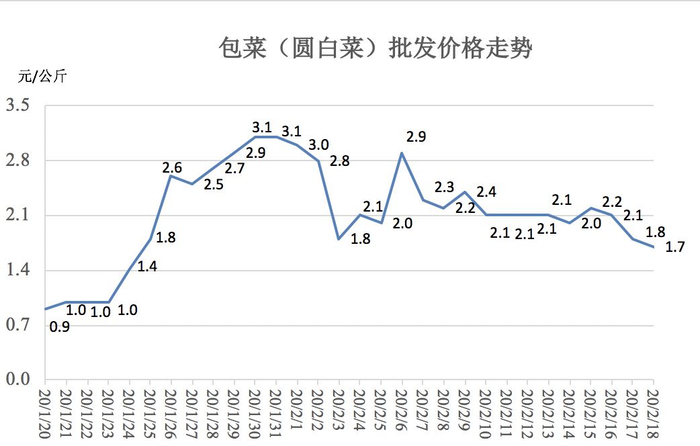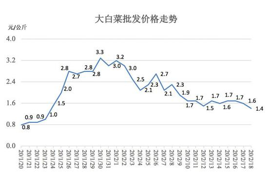 2月18日,武汉白沙洲和四季美2大批发市场蔬菜交易量合计4400吨,比2月初增长142.8%;库存9123吨,增长8.1%。武商、中百、中商三大超市猪肉销量116.66吨,增长79.5%;库存1382.28吨,增长197.3%。