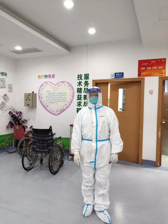 今天有一位患者出院了,自进入红区,他就住在这里。起初,他的体温在38.5°C左右,当跟他谈到疾病时,他的内心还是很焦虑、紧张的。我对他说,放心吧,你一定会没事的,好好配合治疗。此时我最主要的就是给予他心理上最大的安慰和指导,让他充满战胜疾病的信心。