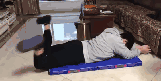 采用俯卧姿势趴于垫子,两腿伸直脚背绷直,上下交替打腿。(大腿带动小腿)
