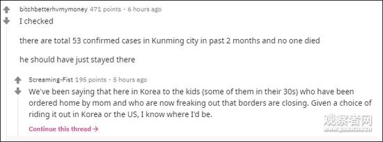 也有人称:“我查了数据,昆明过去2个月内累计确诊才53例,无死亡病例。他就应该待在那儿(观察者网注:昆明目前治愈率高达98%,仅剩1例在医院治疗)。”
