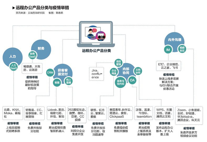 1月24日起,企业级综合协作工具企业微信、飞书、钉钉,专业的音视频会议提供方Zoom、小鱼易连、华为云WeLink、腾讯会议,文档协作公工具石墨、印象笔记、ONES等纷纷免费开放远程办公产品,加入了“抗疫”大战。