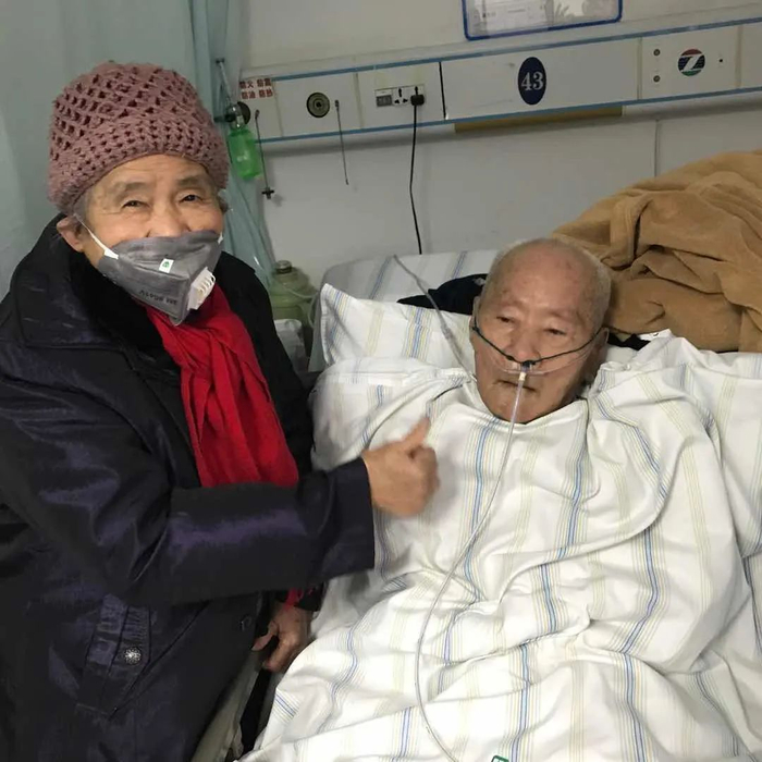 2020年1月24日,妈妈和爸爸的最后一张合照——大年三十去医院拜年看望,鼓劲加油。