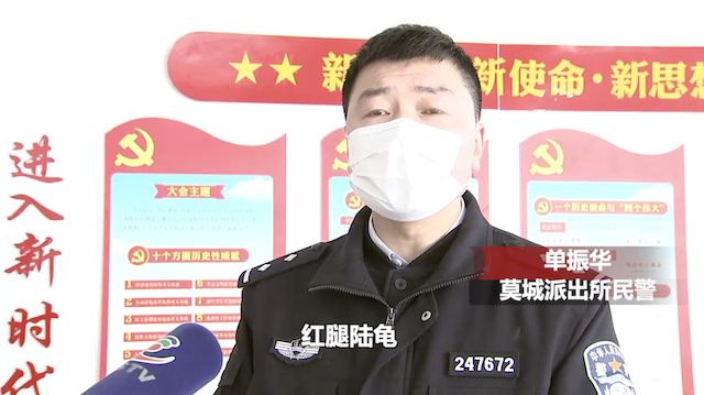 莫城派出所民警单振华:“在2017年4月份,通过网络上购买了一只红腿陆龟,之后他在饲养过程中,在买龟粮的过程中,了解到了其他购买渠道,之后2017年的5月份,2018年的5月份,先后两次,通过网络上,以五百到一千元的价格,购买了两只陆龟。”