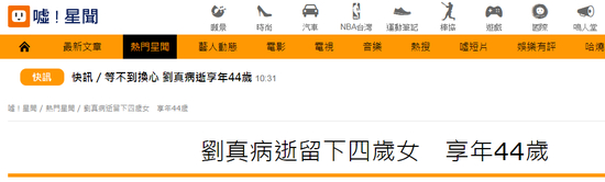[环球网报道]台湾《联合报》“中时电子报”等多家台媒23日报道称,台湾“国标舞女王”刘真于22日晚间病逝,终年44岁。
