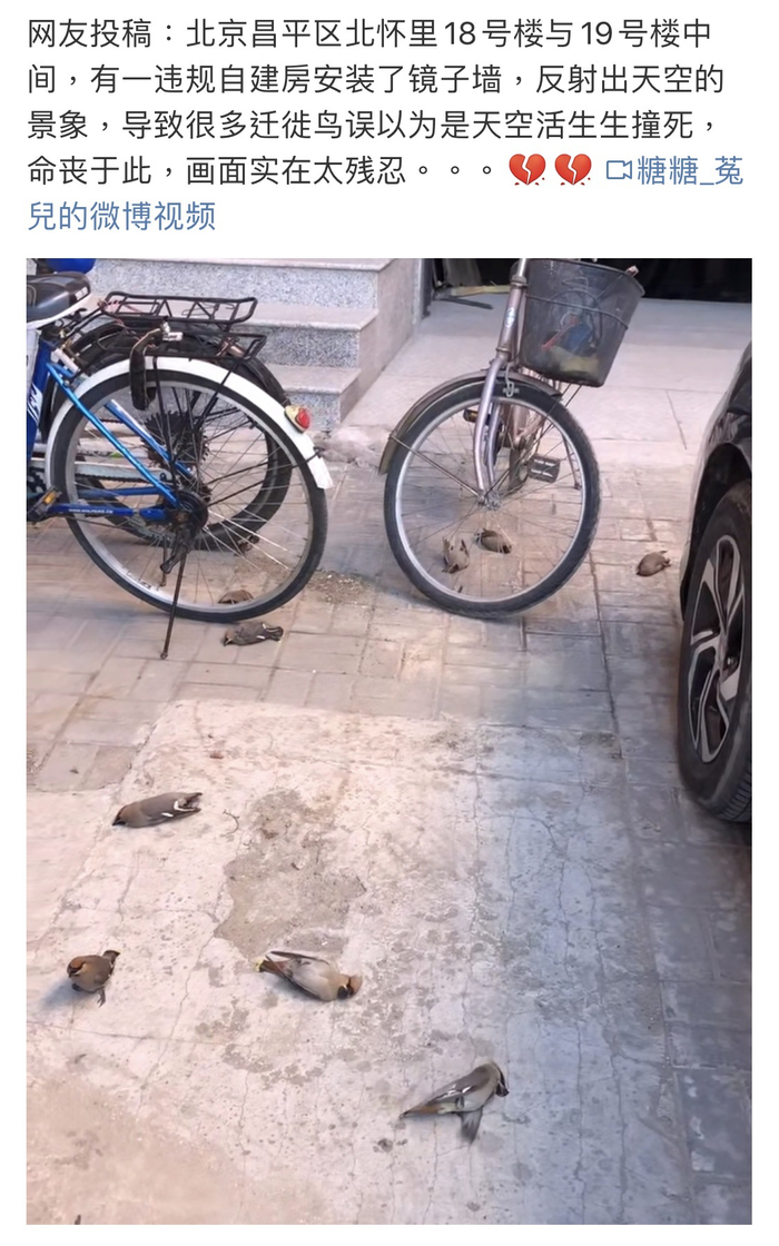 原标题:昌平一自建房装玻璃幕墙致鸟类撞击死亡 官方称已遮盖