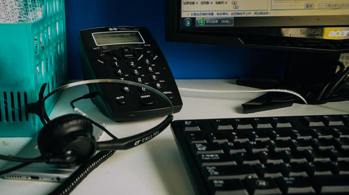 接线员的工作台,一个电话,一副耳机,一台电脑。 本文图片均解放日报·上观新闻记者 黄尖尖 摄
