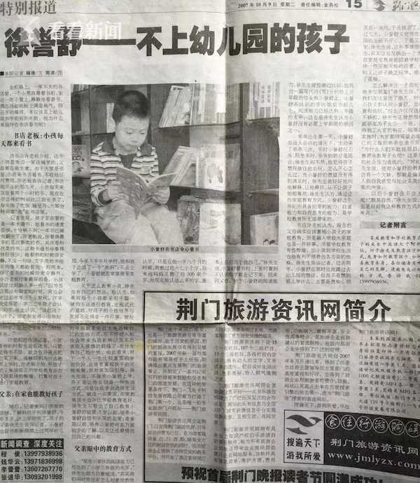 “这反映了一个矛盾:在家接受教育能回避学校教育中一些压制天性的因素,但同时又让孩子缺少玩伴,感到了孤独。”徐远侠向《荆门晚报》记者坦承,他对儿子的教育也许有一个欠缺,那就是偏重于人的自我感觉,与社会主流价值观有冲突。