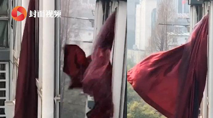 无论刮风下雨还是雪花飘落,一条暗红色的窗帘一直飘在窗外。今年2月15日起,武汉汉口的网友丁玲(化名)将领居家窗帘飘出窗外的视频发布在个人短视频账号上,配上音乐后的视频在网上引发关注,首条视频便超过32.5万名网友点赞评论。