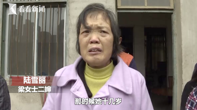 梁女士二婶陆雪丽:“我们太激动了,感谢你们。27年不见了,现在我们老了见她一次,那时候她十几岁,到现在才见。太高兴了,太激动了说不出口。”