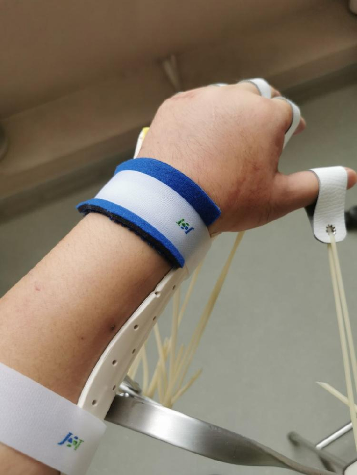 陶勇:现在我的手在被动状态的时候还算柔软,如果拿右手去掰左手,是可以掰开的,可以说关节的僵硬程度改变了不少,一开始左手就像“鸡爪子”一样,硬邦邦的。