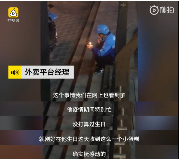 外卖小哥深夜路边吃蛋糕,边吃边抹泪……