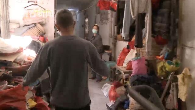 据小区物业人员宋师傅介绍,住户陈大姐两三年前就开始收集垃圾,以前物管还清理过两次,可是如今又堆了这么多,对此他们也很担心。宋师傅带记者来到陈大姐家,不过陈大姐不在,陈大姐的丈夫杨师傅从屋里走了出来。杨师傅的态度并不友善,他不断强调垃圾不是他捡到。物业人员表示,垃圾的确是陈大姐一个人捡的,不但走廊里堆满了,她家里也堆得到处都是。