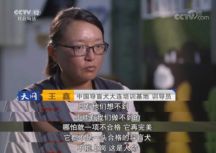 为什么工作如此繁重?王鑫说这份工作“只有他们(盲人)想不到的,不能有我们做不到的”,“哪怕就一项不合格,它再完美,它都不是一头合格的导盲犬,不能上岗,这是人命”。