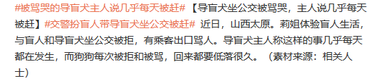 其实多地都在陆续施行“盲人可以携带导盲犬出入公共场所或者乘坐公共交通工具”的规定,但实际生活中盲人因为携带导盲犬被拒载的事却依旧屡见不鲜。