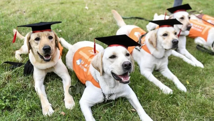 6只预备导盲犬在中国导盲犬南方示范基地“毕业”。(图源中新网)