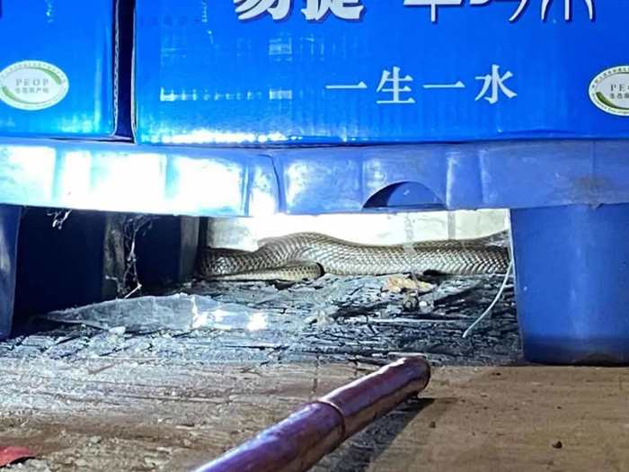 放置矿泉水的位置发现了蛇的身影