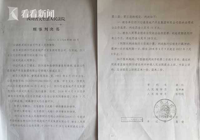 这份近日公开的判决书说,自1999年至2016年2月期间,四川竹凌房地产开发集团有限公司在不具有吸收公众存款的资质和业务的情况下,在经营房地产开发业务过程中由于缺乏资金,先是从银行贷款、小额贷款公司借款,后发展到以高利率的诱惑公开向社会公众吸收资金。