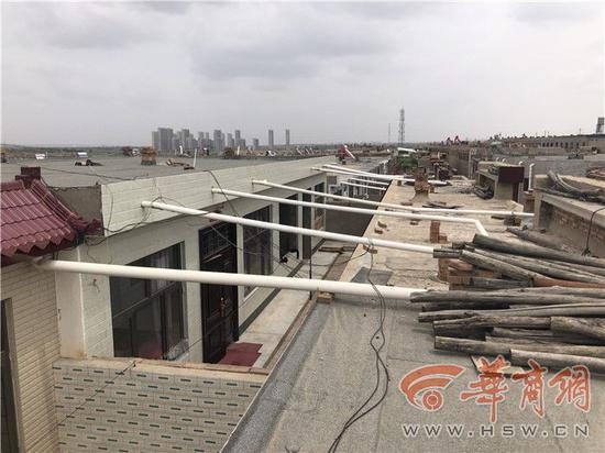 在马某宽家门口,记者看到,红色大门上方写着“鸿福吉祥居”几个字,大门紧闭,敲门也始终无人应答,从邻居家屋顶可看到院落的基本情况:房子有两部分,一部分装修有人入住,另外一部分窗户未安装,空置着。