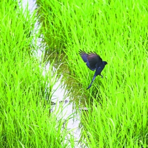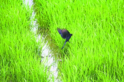 正在飞翔的黑卷尾,是常见的夏候鸟