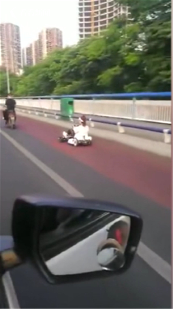 在网友拍摄的视频里可以看到,一名身穿白衣的女子驾驶着四轮小车行驶在文昌桥的非机动车道上。车速不是很快,不时有电动车、摩托车从她身边超过。低矮的车身和奇特的造型吸引了不少人的注意。