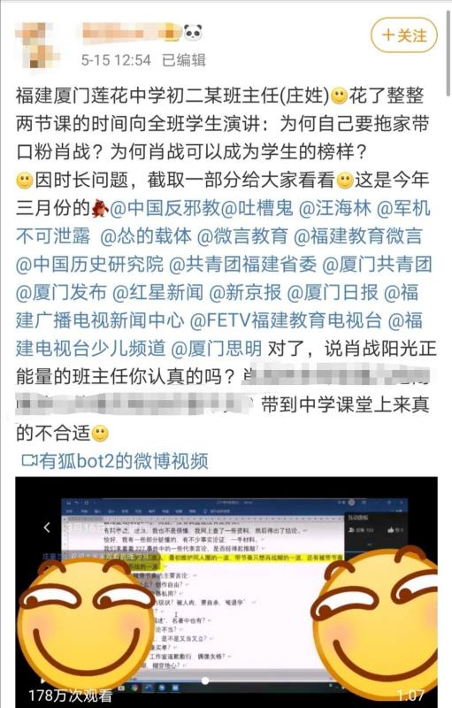 原标题:福建厦门一中学教师网课中推荐明星肖战?市区两级教育局介入