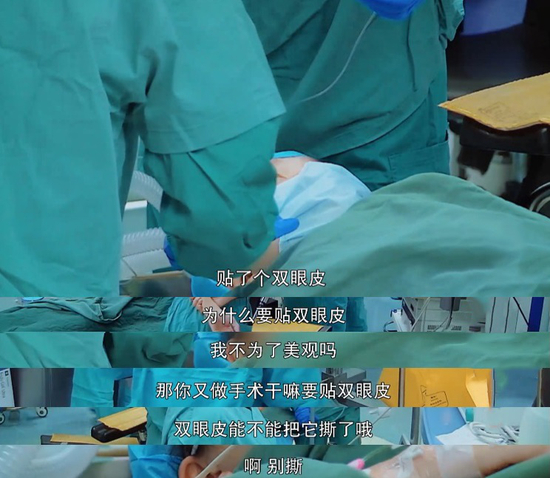尽管如此,她也不忘给自己贴个双眼皮贴。