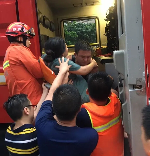 凌晨4时,莞城塞纳河畔一栋二单元28楼一孕妇羊水已破,电梯停电停止运行,家人无法转移孕妇,情况十分紧急,消防救援人员将其从28楼抬下,并用消防车送往医院,目前正接受治疗。